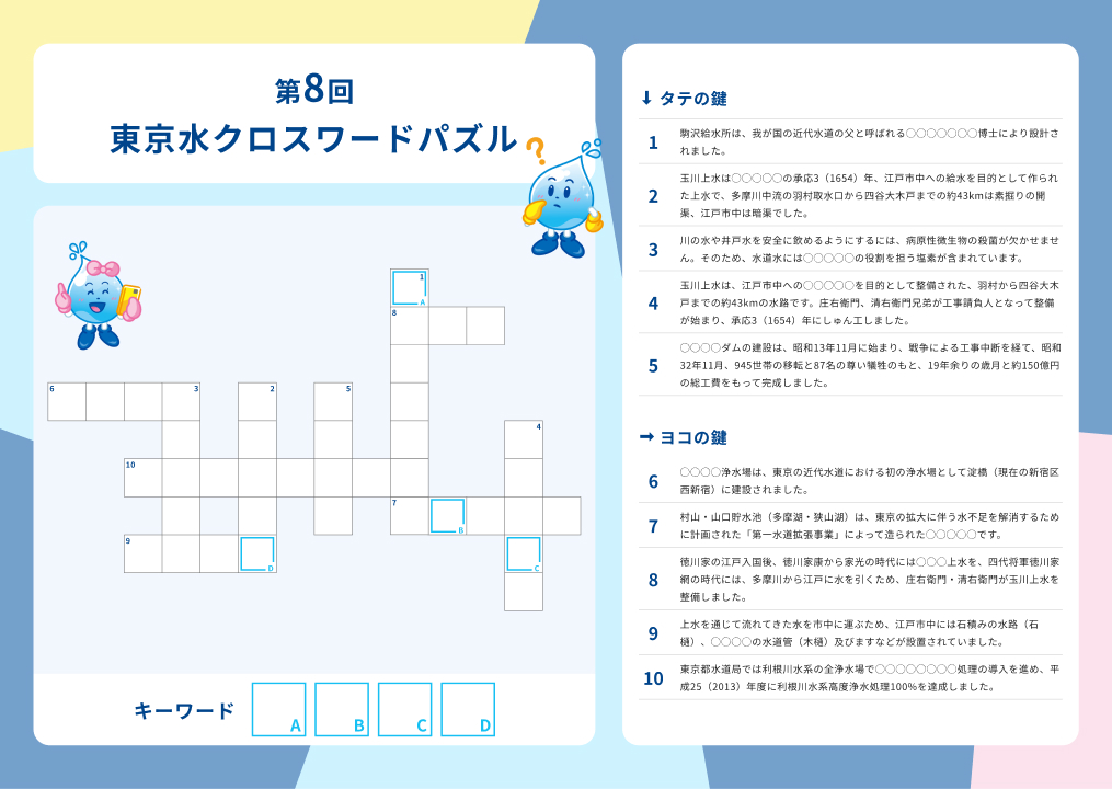 水道の用語を使ったクロスワードパズル。